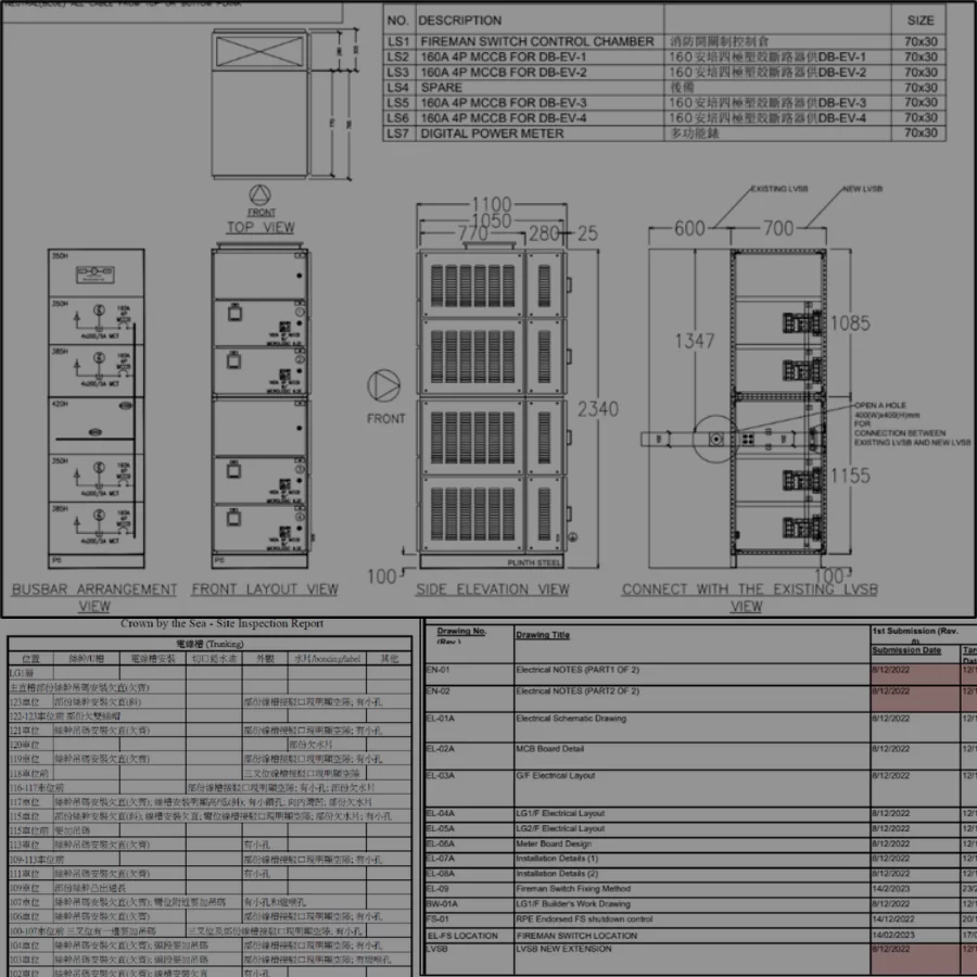 - Construction plan (trunking/cable rack/isolating switch, etc.)